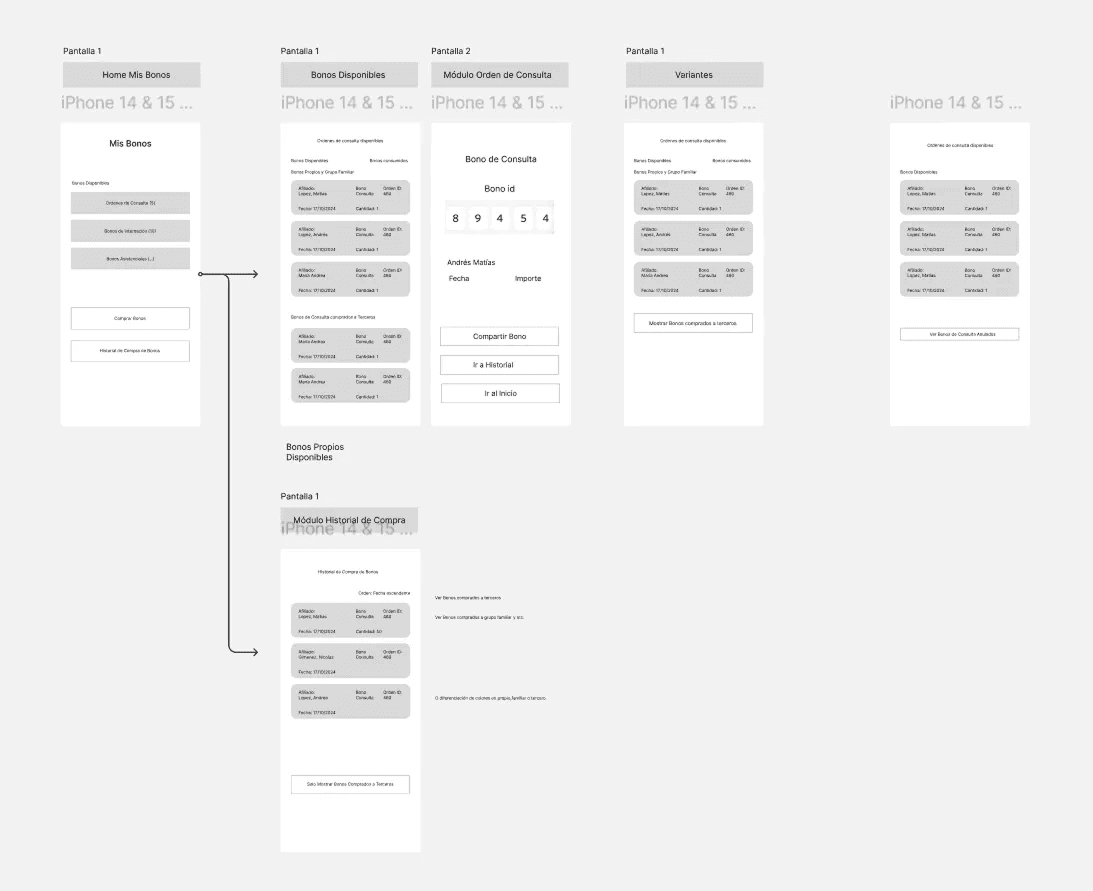 Iterated through multiple diagrams to define family vs. individual bond views. Designed distinct flows for purchase history and multi-purchase features to reduce user friction.