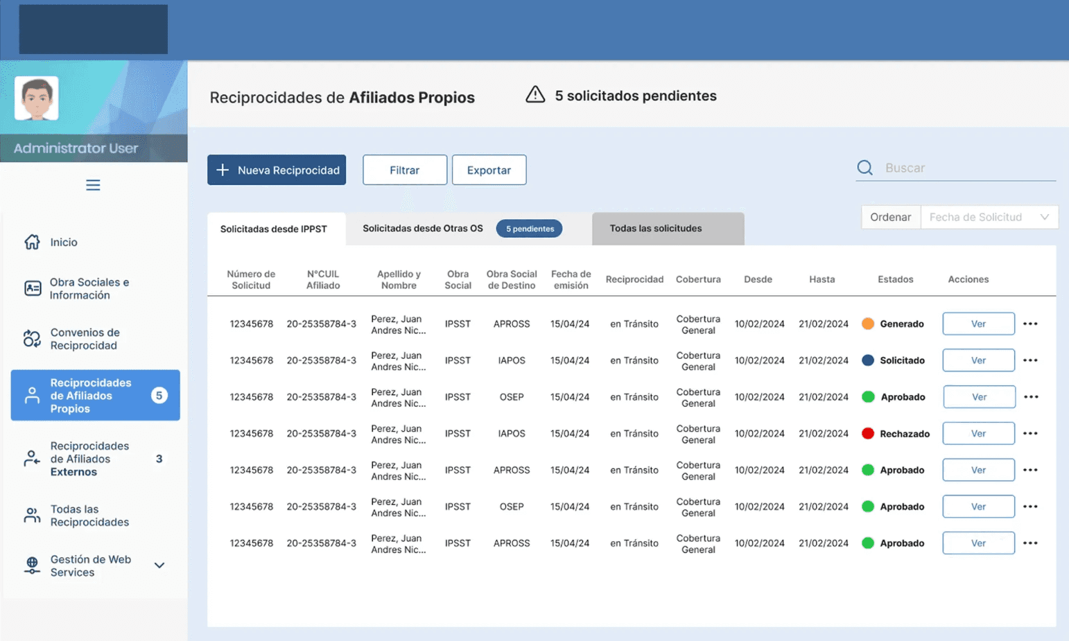 Portal for managing temporary affiliate transfers between healthcare providers based on formal reciprocity agreements.The product was part of a broader system, with a pre-defined technical architecture (web app with side panel) established by engineering prior to design involvement.
